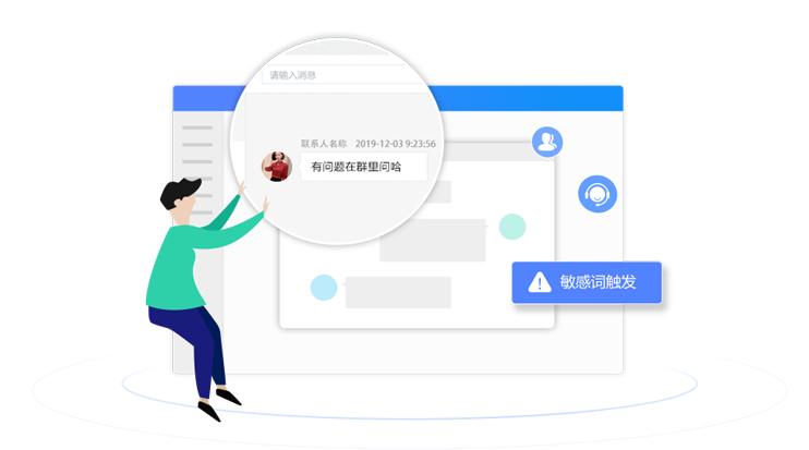 主管可查看員工和客戶的聊天內(nèi)容,并可以設(shè)置規(guī)則,對敏感行為 進(jìn)行記錄,一旦發(fā)生敏感行為,主管可及時收到提醒。